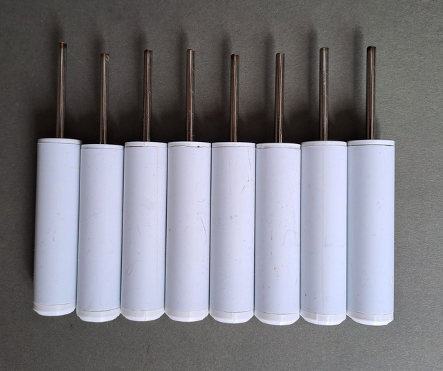 White plastic marker pegs with 4mm diameter stainless steel pin. The pin is stiff enough not to bend if the peg is hit hard by a ball and the peg will not shatter.