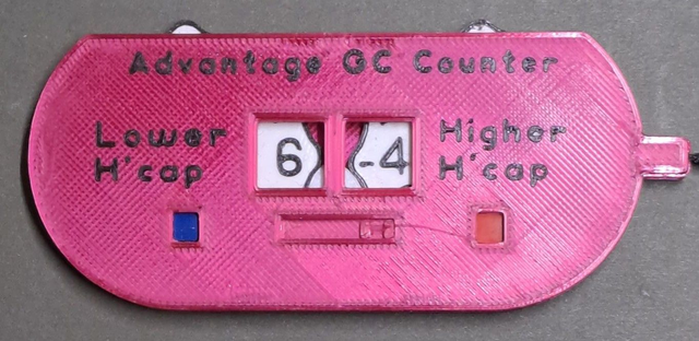 Standard Flat Counter with the addition of a slider which can be adjusted to show the combinations of the ball colours being played. Combinations of blue/red, red/blue, green/pink, pink/green. Can be dismantled, by undoing two screws so that the numbered wheels can be replaced with wheels with revised number combinations should the WCF change the system. Go to spare wheels. Clip included. Length 100mm excluding clip Height 44mm Thickness 7mm excluding clip For personalised version please state name to be added in 'Message for Merchant' at the Shopping Basket stage